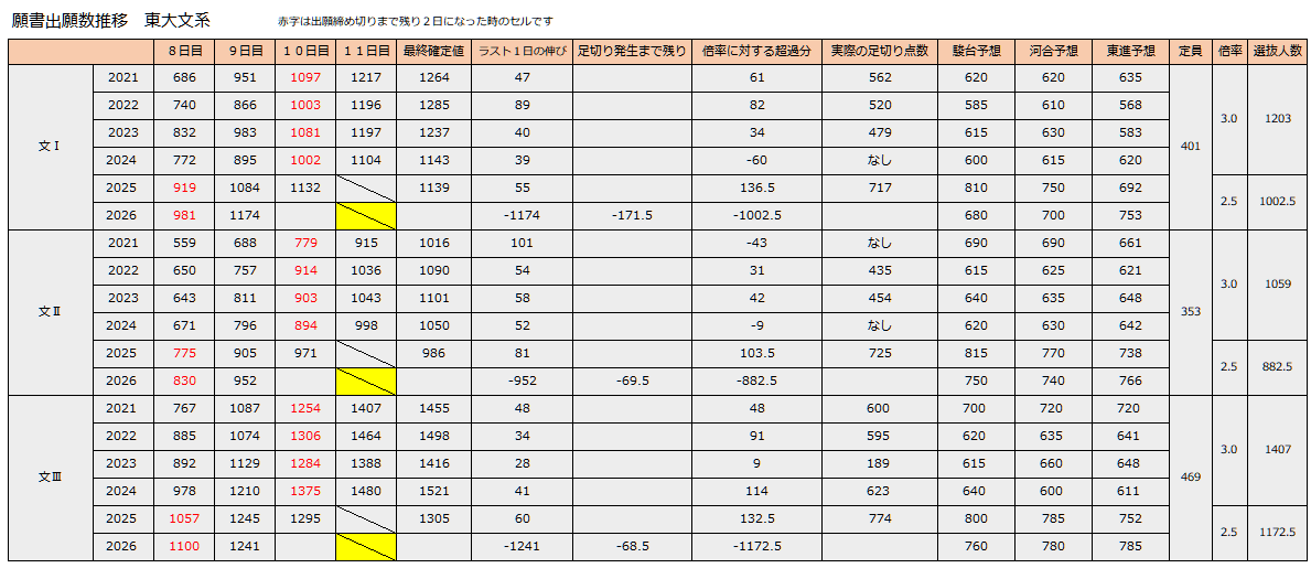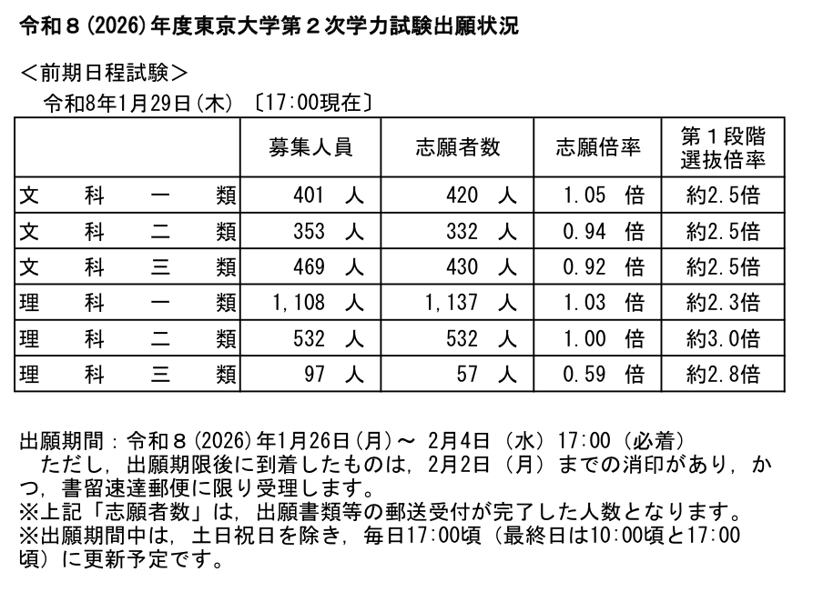 ★ブクマ推奨★(出願中は毎日更新!)東大の足切り出願速報、ライン予想、結果の考察など【2026年版】