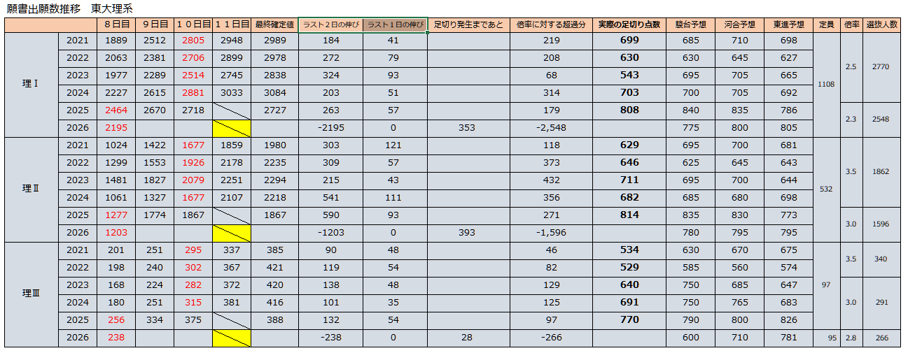 理Ⅰは最後にあまり伸びず、去年と同数程度に落ち着きましたね。最後2日で大きく伸びました。