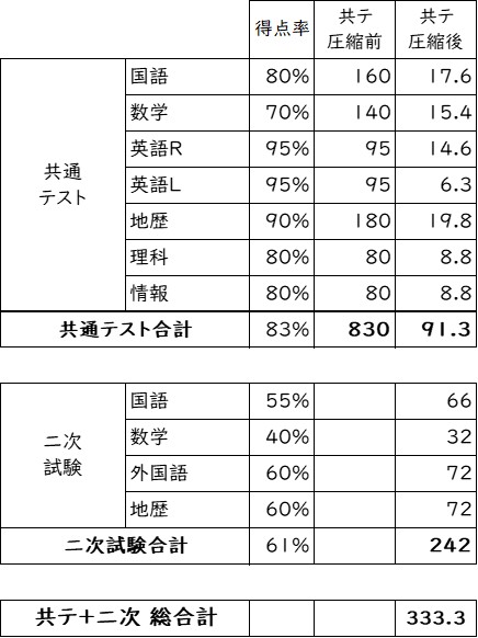 共通テストは合計1,000点が110点分に圧縮されます
