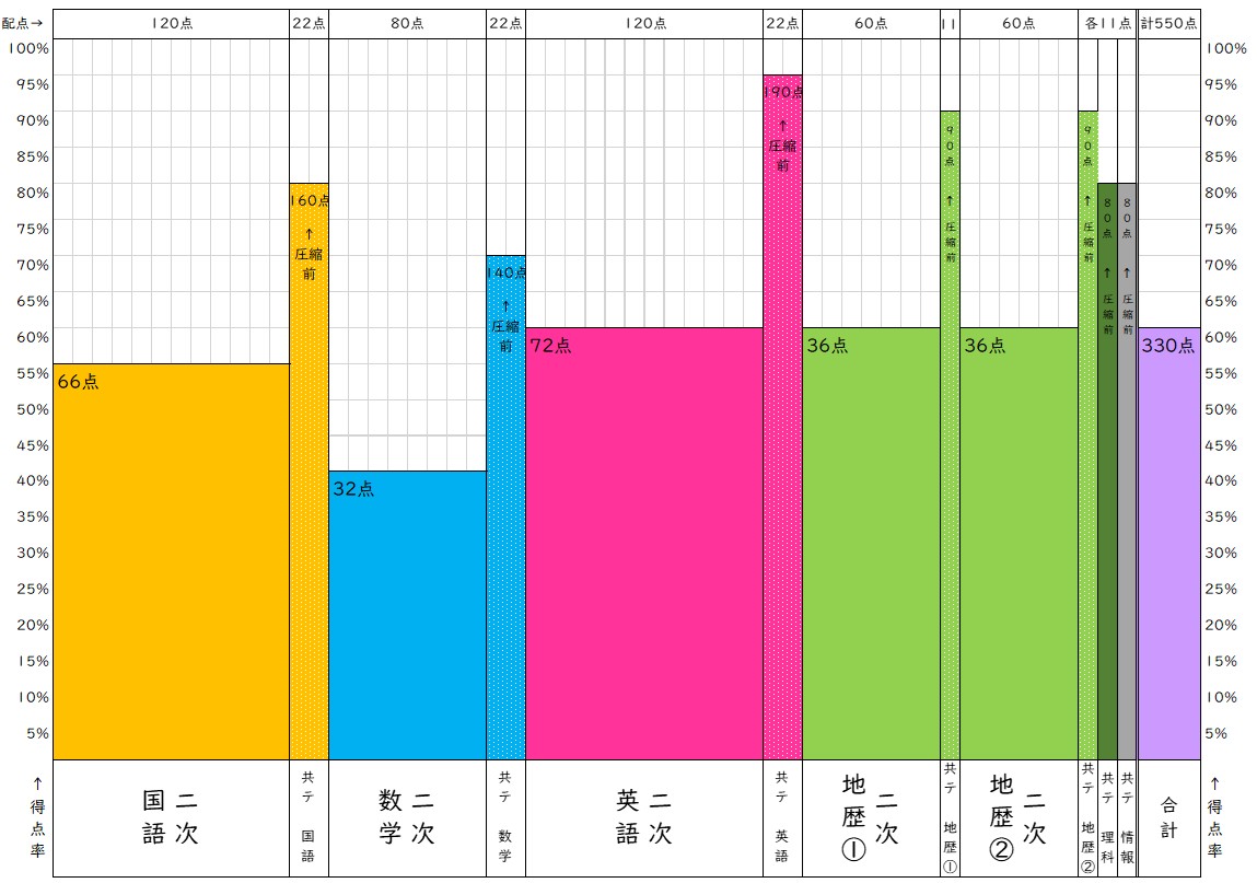 全体550点=共テ110点+二次440点