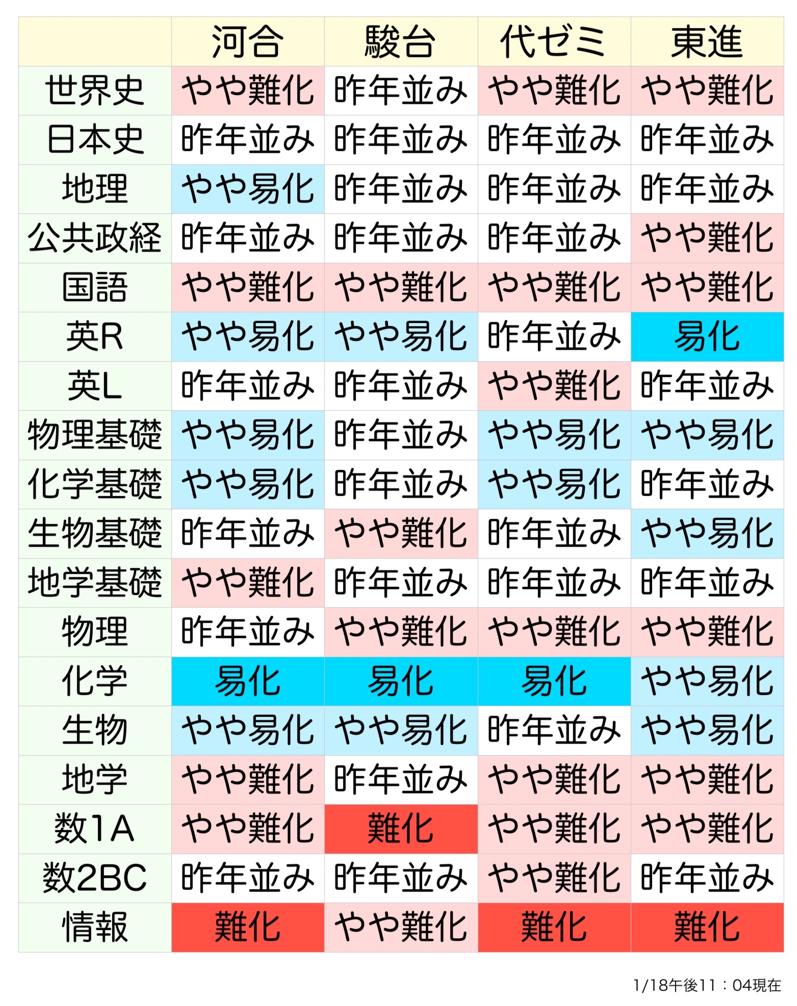※共通テスト当日の速報です。各社、難易度判定を変更している可能性もございます。