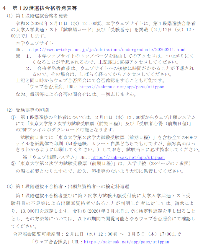 詳しくは東京大学の募集要項をご覧ください。