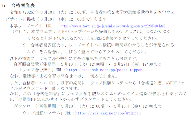 3月10日(月)12:00(ウェブ)合格者発表