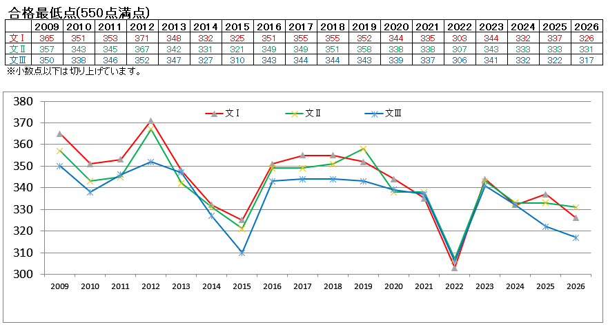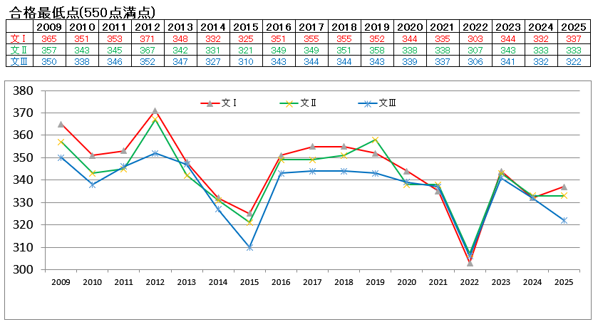 東大の合格最低点のデータ