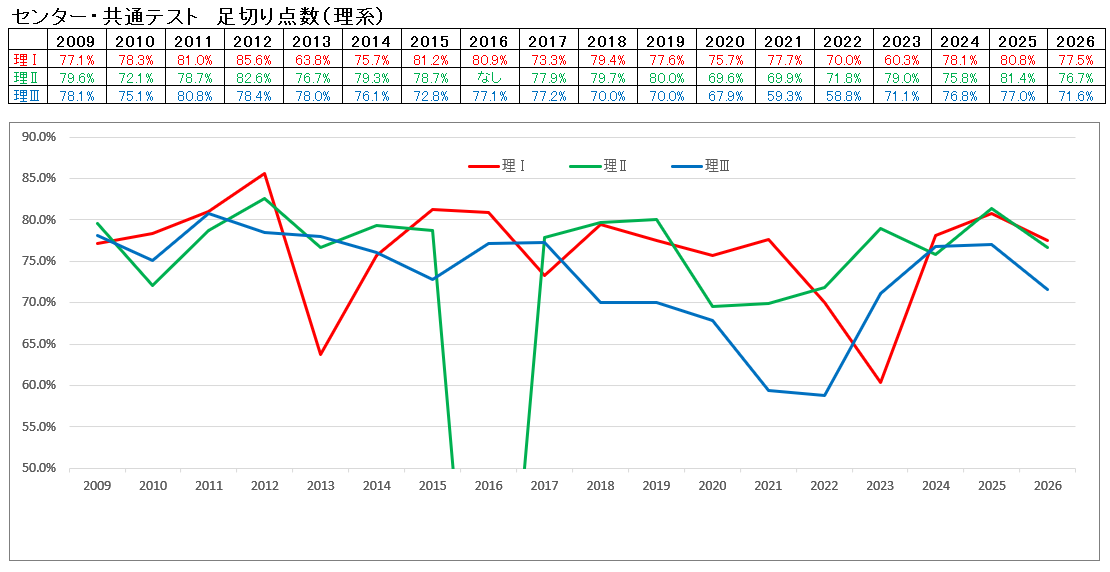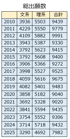 理科二類:約3.5倍 → 約3.0倍(約266人) → 約3.0倍(変更なし)