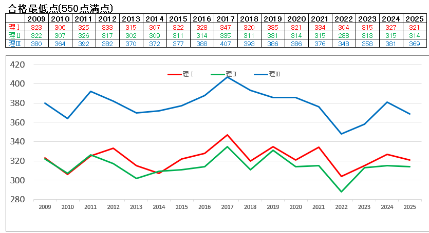 理科三類:約3.0倍 → 約2.8倍(変更なし) → 約2.8倍(約25人)