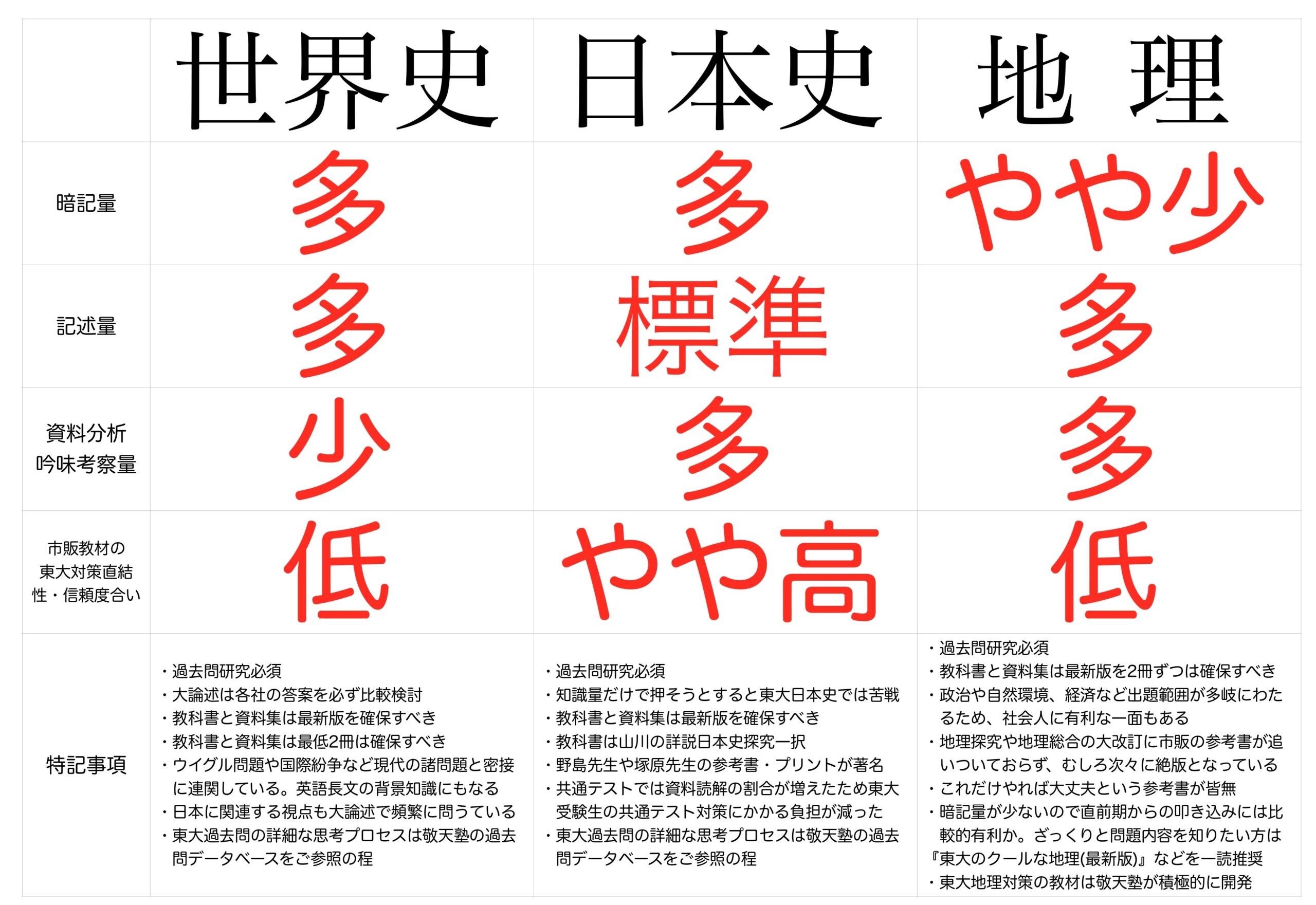東大入試では、世界史・日本史・地理の3科目から2つを選択するわけですが、どのような違いがあり、どのような基準で選択すれば良いのか、選択方法によって受験戦略に差異は生まれるのか悩まれるはずです。