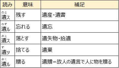 漢文語彙「遺」は多義語ですが、熟語として思いつきやすい「遺品・遺産」の「遺」の意味なので、今回は容易でした。