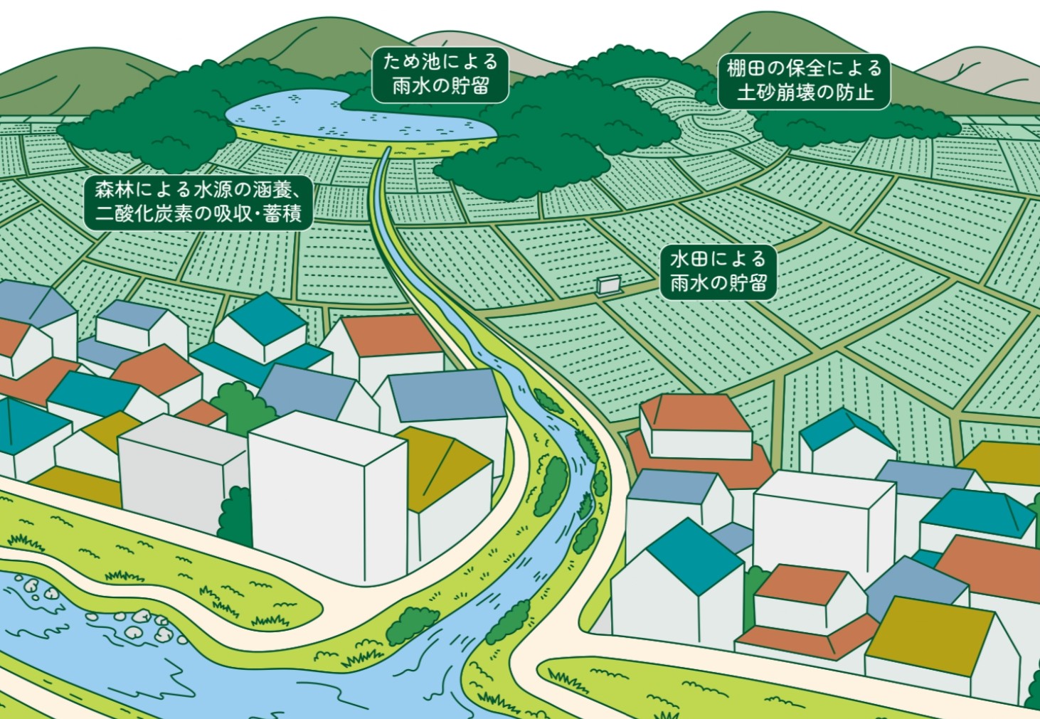 要するに、上流にダムを建設して洪水を食い止めるだけではなく、敢えて田んぼなどに水をあふれさせて川の流量を減らし、下流域における水害を減らそうとする試みです。