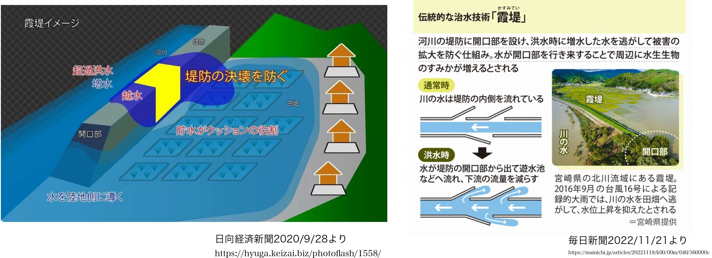 ちなみに、こうした流域治水の考えは、古くは武田信玄公が建設を指示したとされる霞堤(かすみてい)の考え方そのものでもあります。
