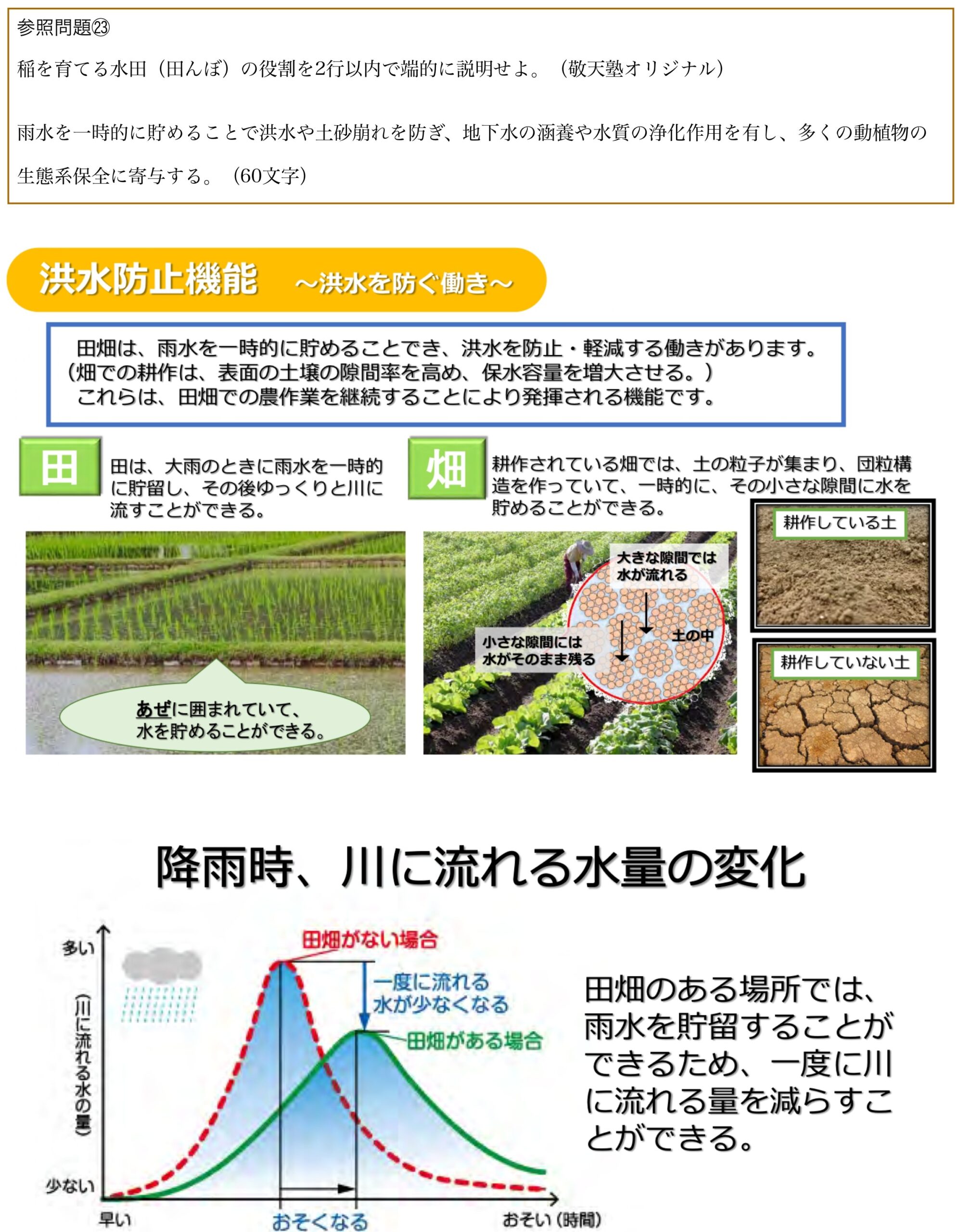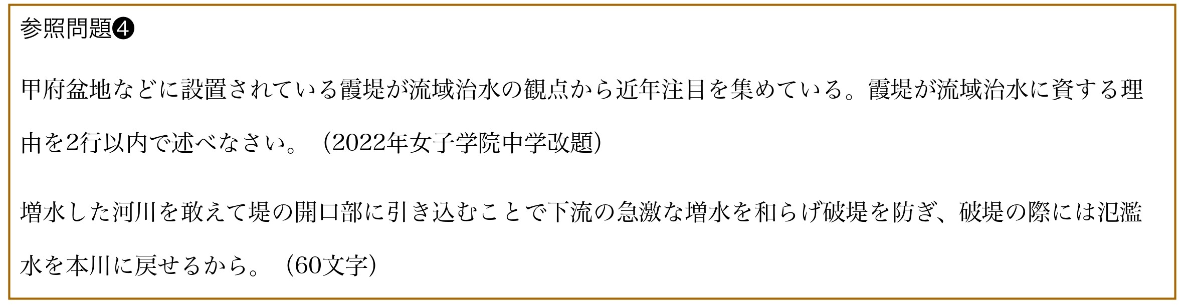 いかがですか。流域治水の話は、なにも東京大学が初めて問うたわけではなく、2022年には東京の女子御三家として知られる女子学院中学校でも出題されています。