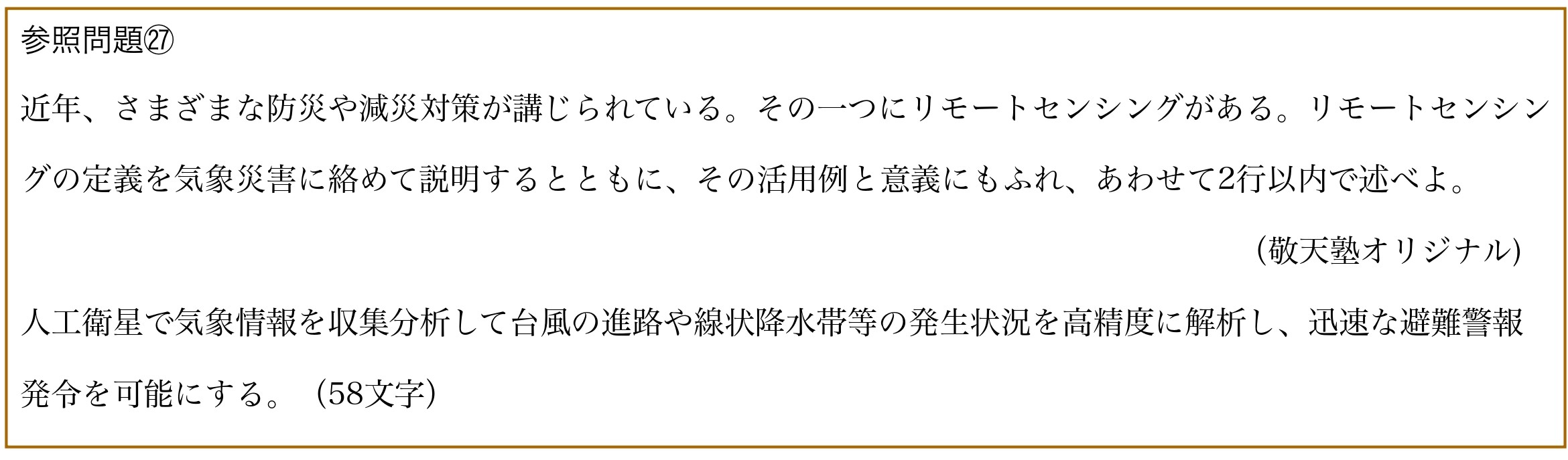 せっかくですから、敬天塾論述問題集より幾つか学習効果の高い問題をご紹介するとしましょう。