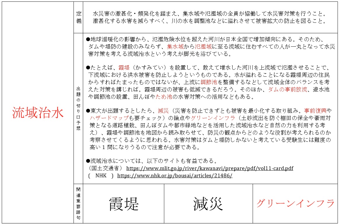 「出るぞ、出るぞ」と警鐘を鳴らし続けてきた流域治水とグリーンインフラが遂に出題されました!