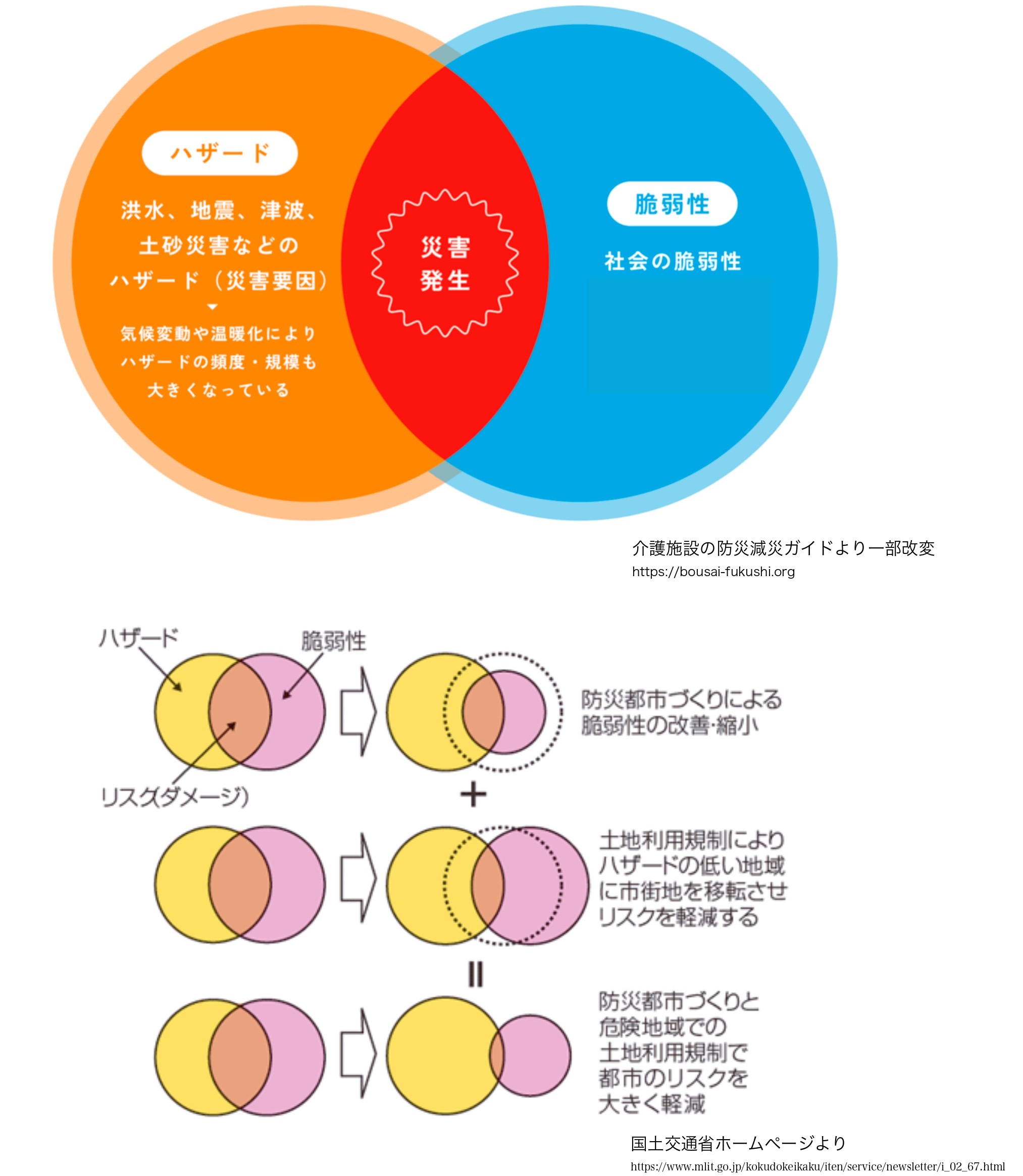 防災対策のインフラ整備は脆弱性の低減にも繋がりますし、災害の種類によってはハザードの低減にもなります。