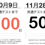 2024年9月16日 / 最終更新日時 : 2025年9月30日 平井 共通テスト共通テスト2026年(令和8年)1月17,18日に向けて 100日間カウントダウンカレンダー 2026年1月17,18日の共通テストに向けて、 100日間カウントダウンカレンダーをご用意しました。 100日前である10月9日から、1日1ページになっています。 自分で自分を鼓舞し続けるのは大変。 カレンダーにある毎 […]